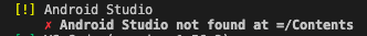 flutter config --android-studio-dir=/Applications/Android\ Studio.app/Contents